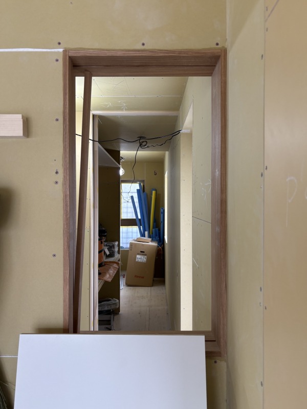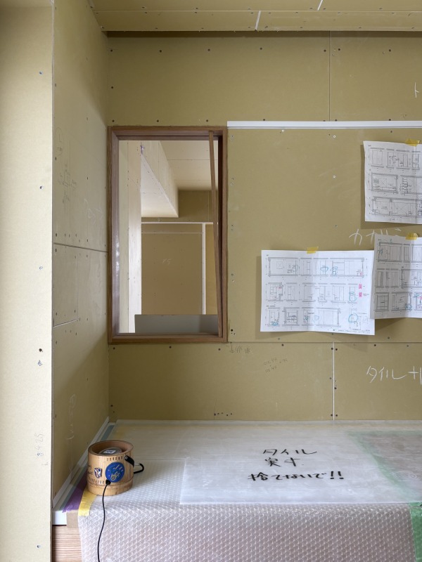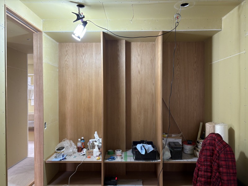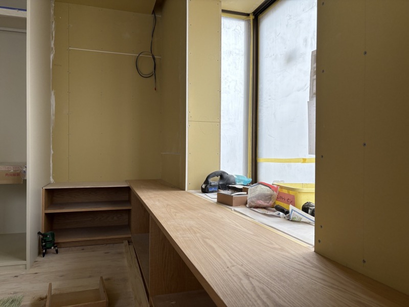 壁や天井の下地も入り切り、大工工事で行う家具も姿を表し始めました。
