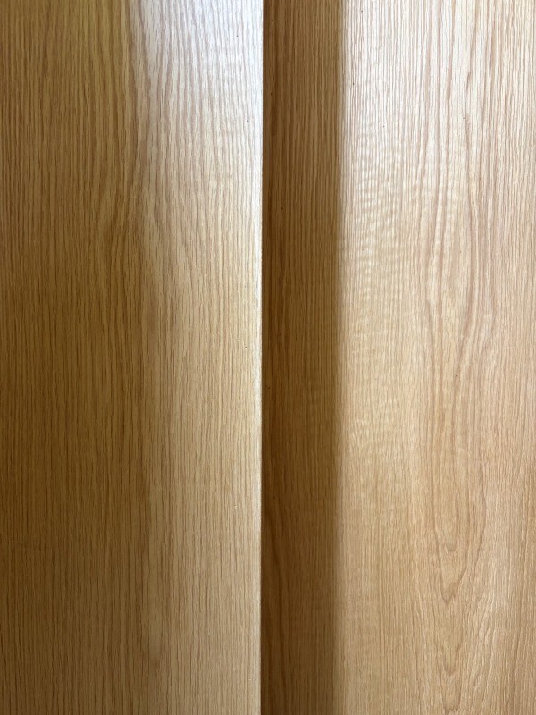 突板屋さんで厳選した、オークの板目も収納壁や天板に施工され始めており、