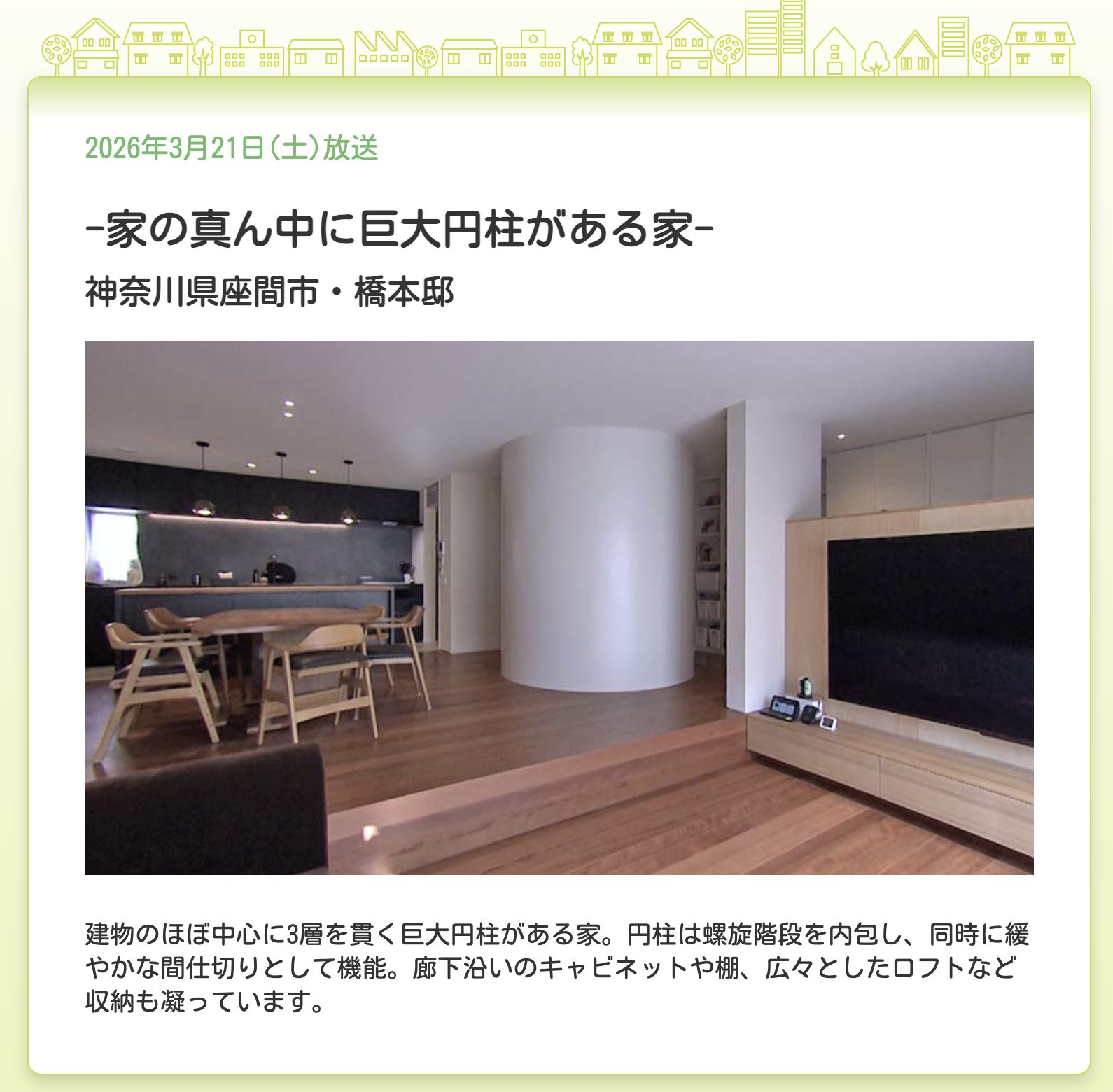 このたび、3月21日(土)放送の「渡辺篤史の建もの探訪」に、